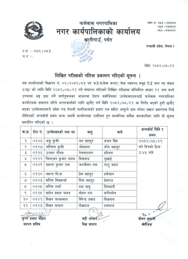 अ.हे.व. पद (सेवा करार) को लिखित नतिजा प्रकाशित गरिएको सूचना !