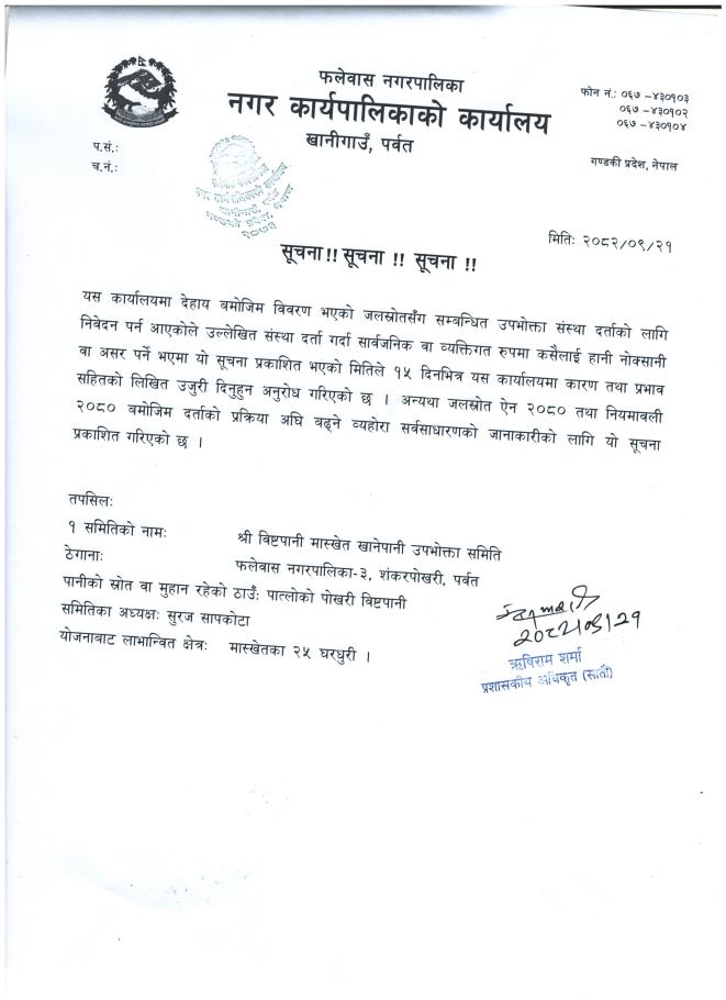 उजुरी गर्ने सम्वन्धमा सूचना !