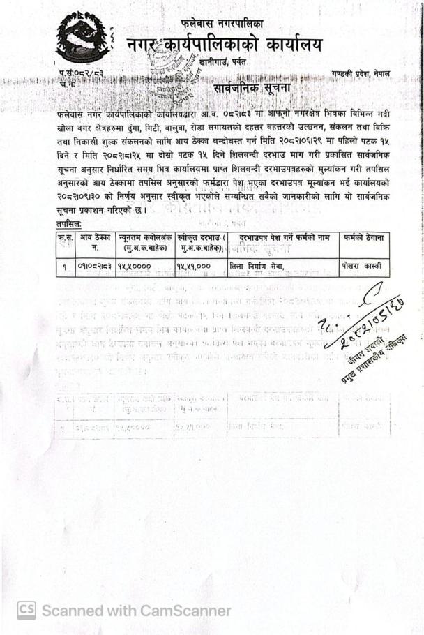» दरभाउपत्र स्वीकृत गरिएको सम्वन्धी सार्वजनिक सूचना !