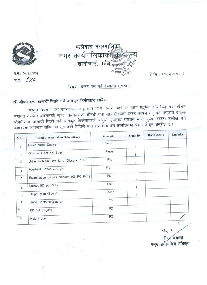 दररेट पेश गर्ने सम्वन्धि सूचना !