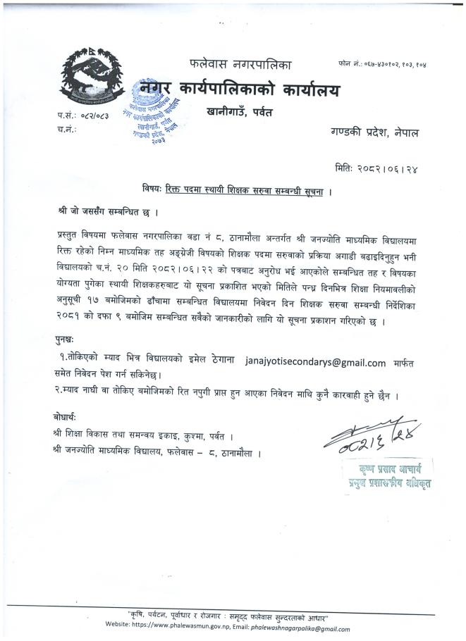 रिक्त पदमा स्थायी शिक्षक सरुवा सम्वन्धी सूचना !