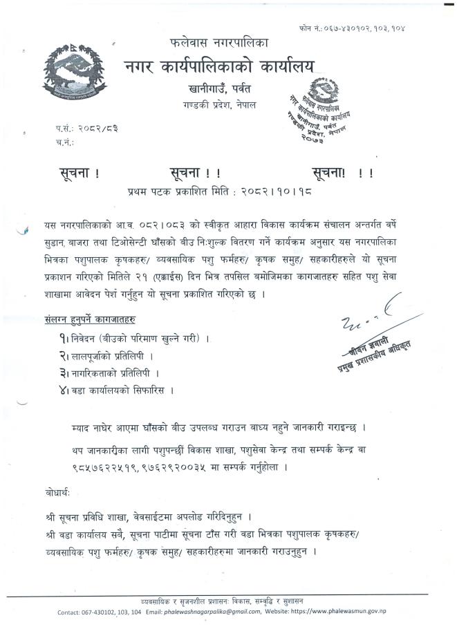 » उन्नत जातका घाँसको वीउ नि:शुल्क वितरण गरिने सम्वन्धी सूचना !