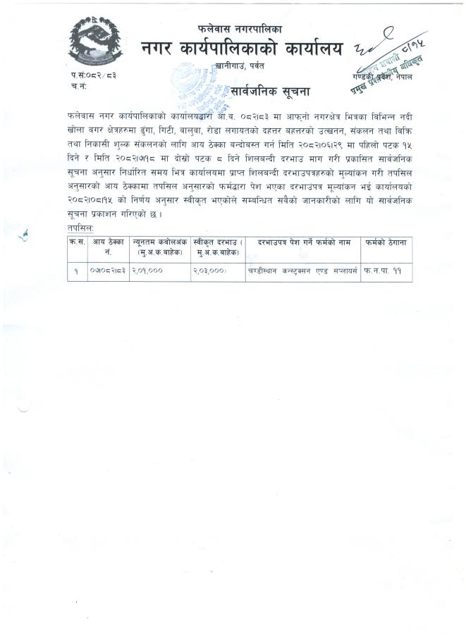 दरभाउपत्र स्वीकृत गरिएको सार्वजनिक सूचना !