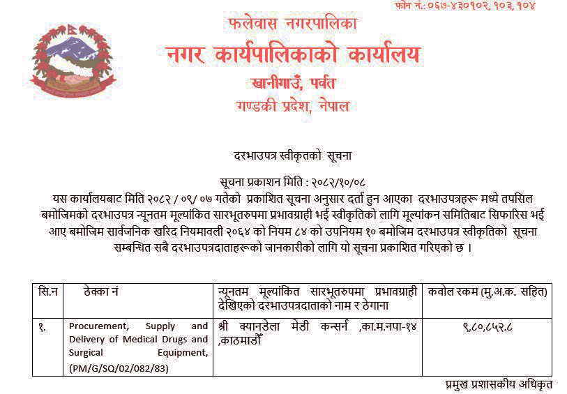 दरभाउपत्र स्वीकृत गर्ने आशयको सूचना !