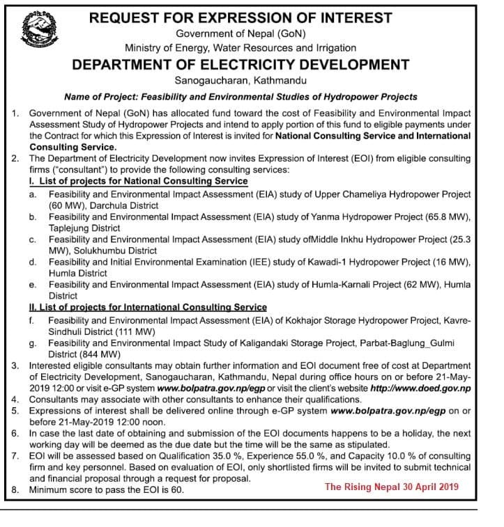 फलेवास नगर कार्यपालिकाले अघि सारेको कालीगण्डकी जलाशययुक्त परियोजना निर्माणमा संघीय सरकारबाट पहल कदमीको शुरूवात भएको छ ।