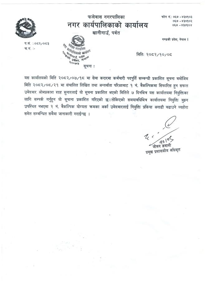 बैकल्पिक उम्मेदवार नियुक्ति प्रक्रिया अगाडी बढाउने सम्वन्धि सूचना !