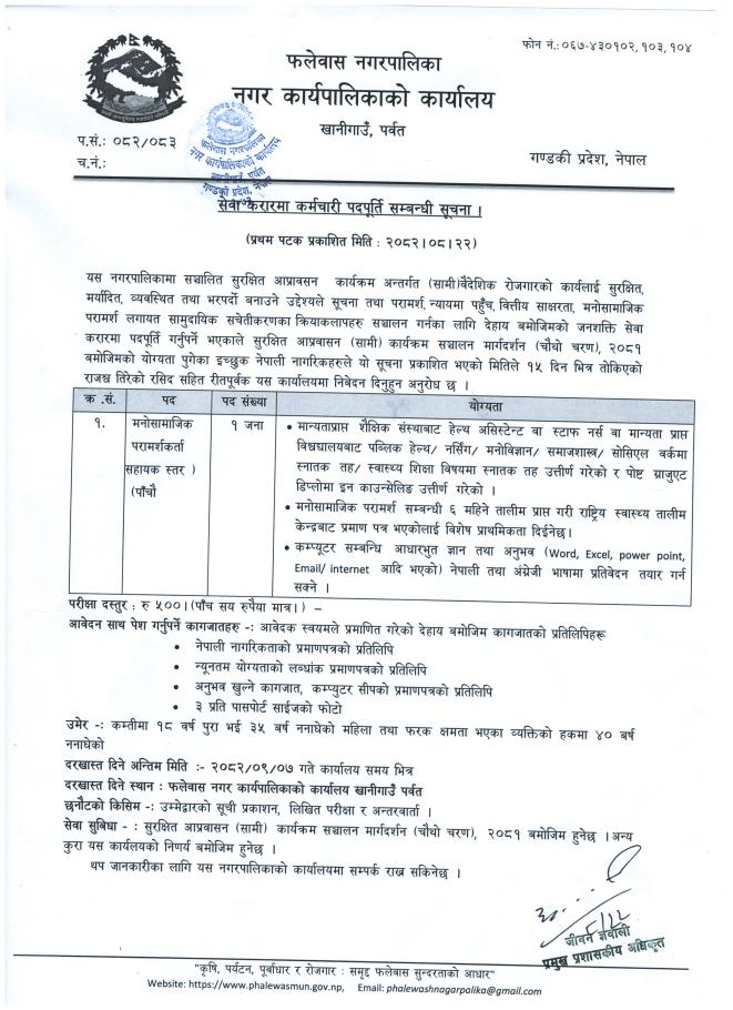 मनोसामाजिक परामर्श कर्ता (सेवा करार) मा कर्मचारी पदपूर्ति सम्वन्धी सूचना !