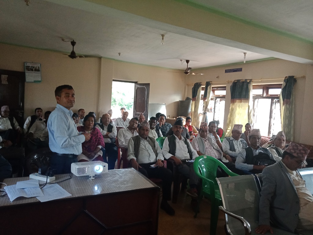 ०७५/०५/२१ गते नगर प्रमुख श्री पदमपाणी शर्माको अध्यक्षतामा कार्यपालिकाका सदस्य, शाखा प्रमुख र पत्रकारहरुको उपस्थितीमा शाखाहरुवाट आ.व. ०७४।७५ का वार्षिक कार्यक्रमहरुको प्रगति प्रस्तुतीकरण गर्नुका साथै अनुगमन टोलिका प्रतिवेदनहरु र सार्वजनिक सुनुवाईको समिक्षत्मक प्रस्तुती सम्पन्न भयो ।