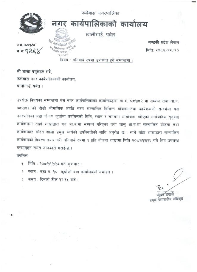 २०७९।०६।०४ गते जिल्ला समन्वय समिति पर्वतमा प्रस्तुत नगरपालिकाको वार्षिक समीक्षा प्रतिवेदन