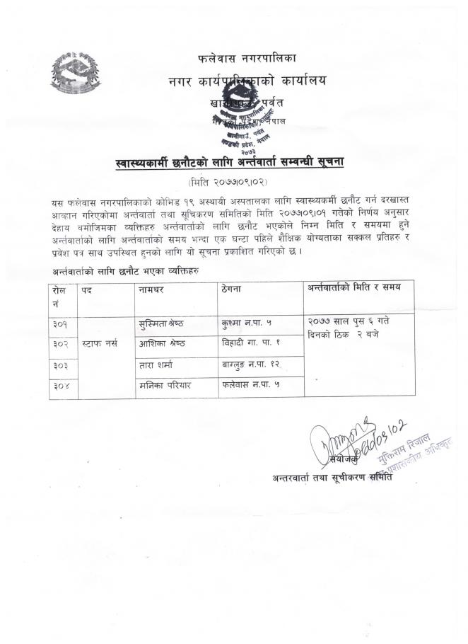 स्वास्थ्यकर्मी छनौटको लागि अन्तर्वार्ता सम्वन्धी सूचना ।